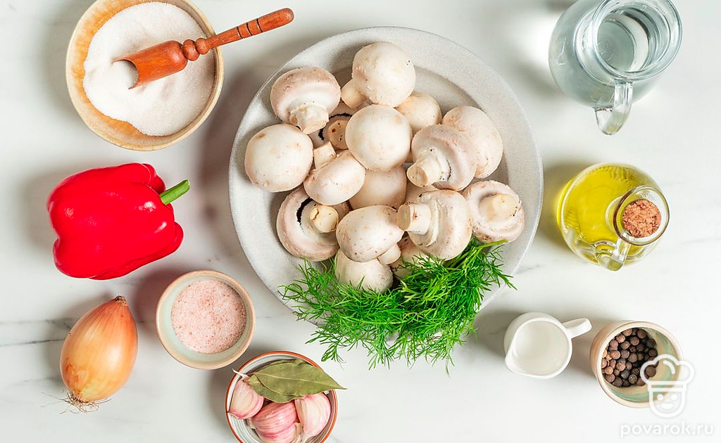Мариновать грибы можно разными способами. Мы предлагаем сделать это с помощью уксуса, это один из самых быстрых и легких вариантов. Для маринования мы взяли маленькие шампиньоны. Большие не подойдут — они требуют более долгой термической обработки.