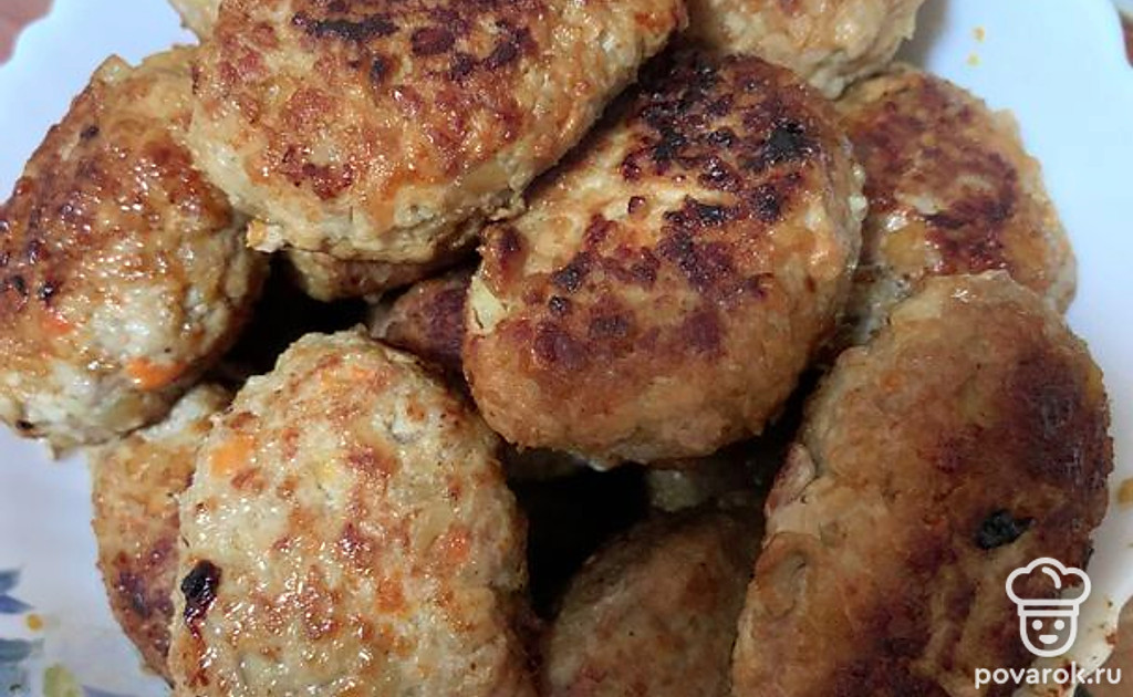 Слепите из фарша котлетки. Обжаривайте на сковородке с двух сторон по 6-7 минут.