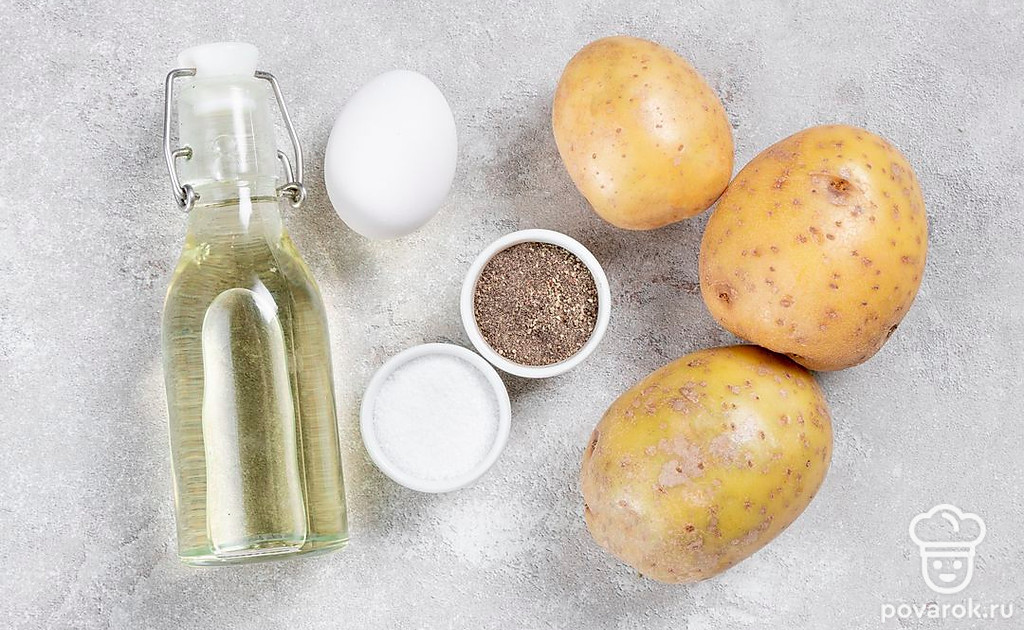 Вкусные драники можно приготовить, не используя муку. Нам понадобятся картошка, яичный желток и специи. А чтобы картофель не потемнел, натрите и добавьте в тесто половинку луковицы.