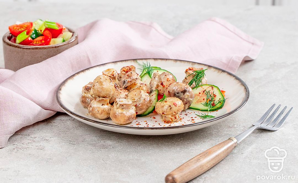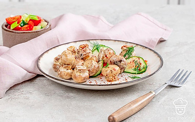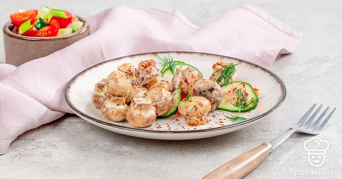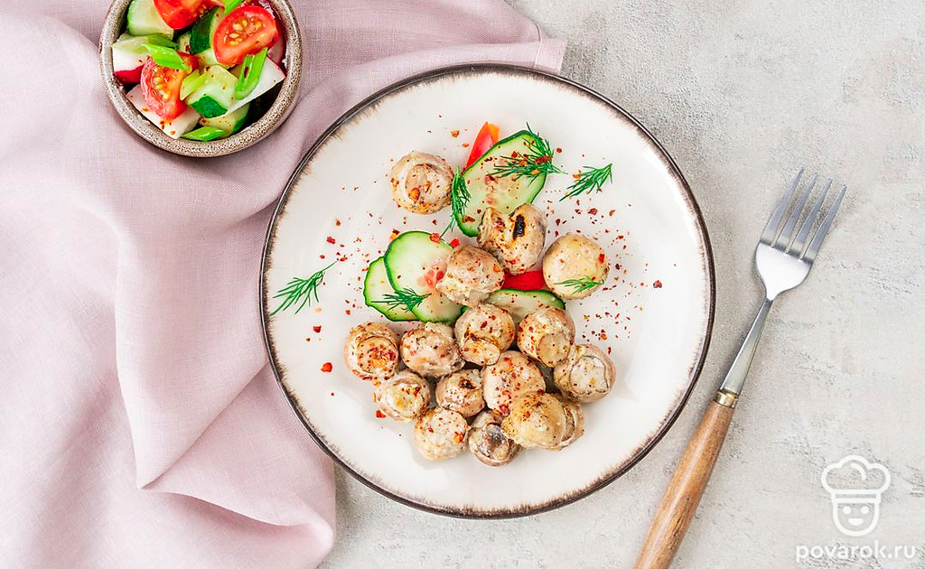 Это отличная закуска, которая быстро и несложно готовится. Минимум усилий: достаточно помыть шампиньоны и подержать их около часа в майонезном маринаде. На мангале они запекутся за 20 минут и будут выглядеть очень аппетитно. Их можно подать на тарелке или наколоть на шпажки.