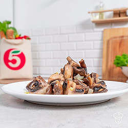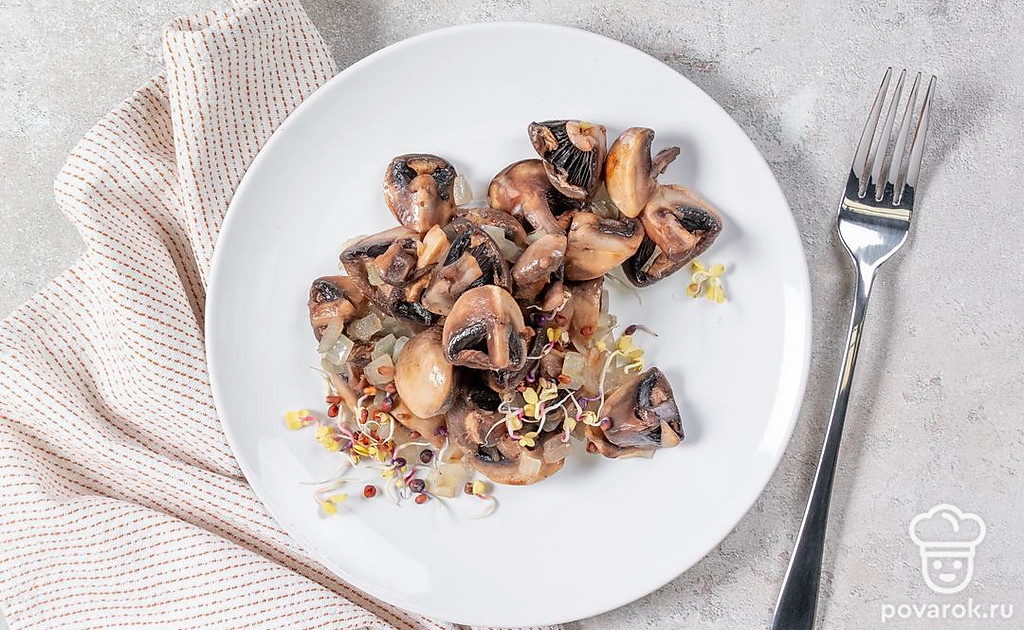 Мы часто жарим шампиньоны, чтобы добавить в другое блюдо. Но их можно подать и как отдельный гарнир. Перед готовкой эти грибы достаточно просто тщательно промыть — больше ничего делать с ними не нужно. Гарнир будет готов, когда вся жидкость из сковороды испарится, а шампиньоны подрумянятся.