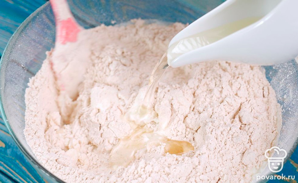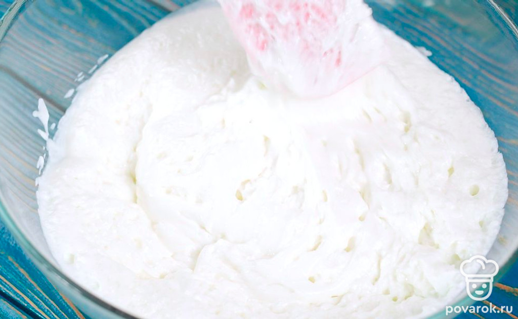 Йогурт должен увеличиться в объеме, он начнет пениться, за счет этой реакции будущая выпечка получится пористой, мягкой и воздушной, похожей на дрожжевую.