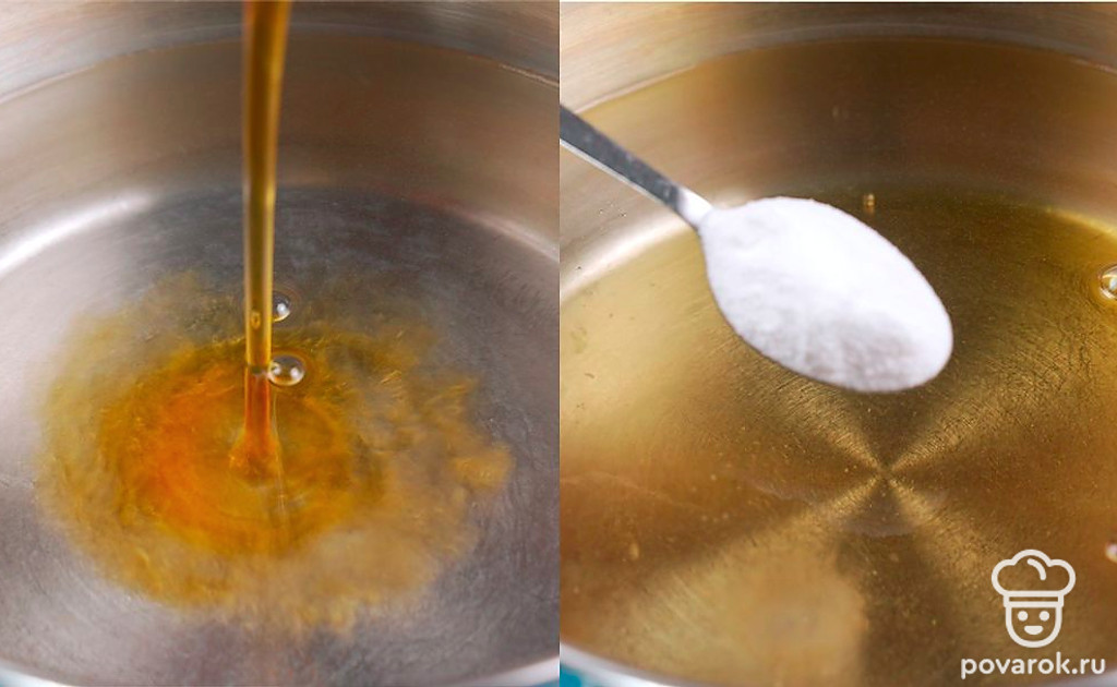 Вскипятите воду, добавить в нее 1 ст.л. сиропа или сахара и оставшуюся соду.