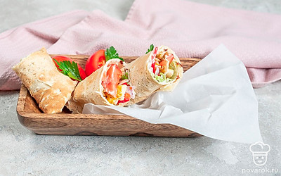 «Цезарь Ролл» без майонеза — это питательный перекус, приготовление которого не занимает много времени. Готовое блюдо получается полезным, так как не содержит в себе вредных добавок. Появилась эта закуска благодаря одноименному салату «Цезарь», правда начинка у этих двух блюд все же отличается. Неизменным остается только заправка в виде нежного соуса. В этом рецепте она готовится на основе сметаны, а не майонеза. Такой вариант более полезный и менее калорийный.