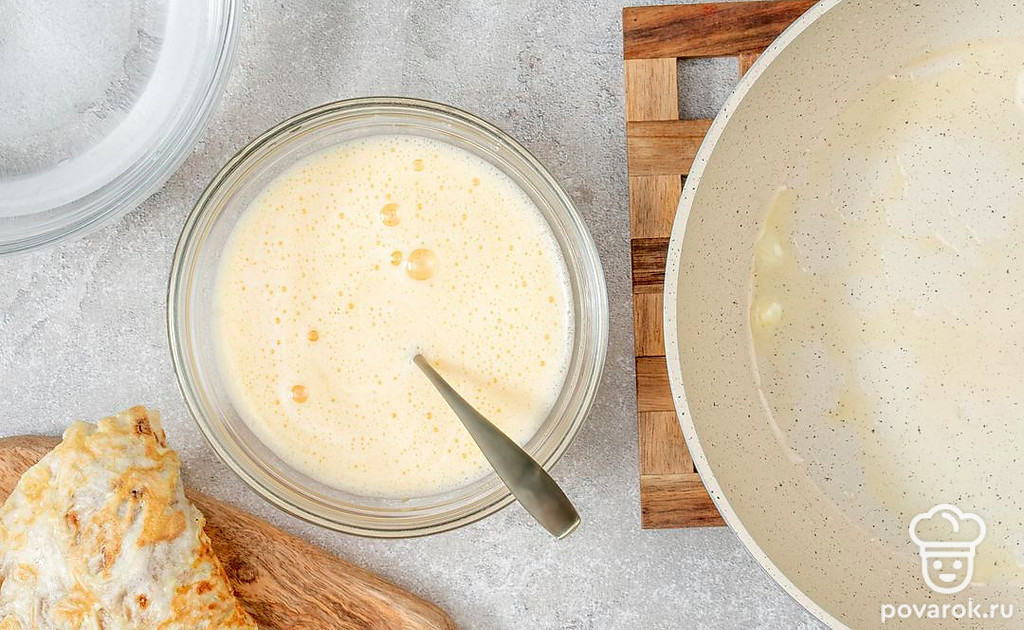 Яйцо слегка взбейте. Лаваш нарежьте по размеру сковороды, чтобы получилось четное количество кругов. Растопите на сковороде масло. В миске с водой растворите соль. Попарно окунайте заготовки из лаваша в соленую воду, чтобы они склеились.