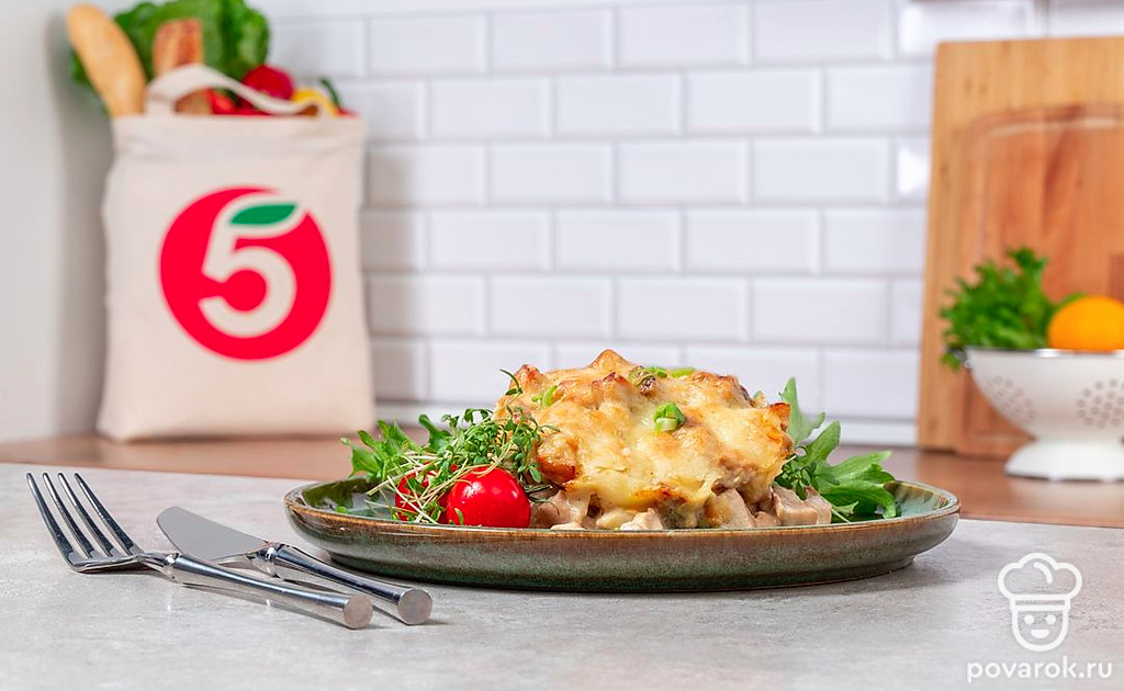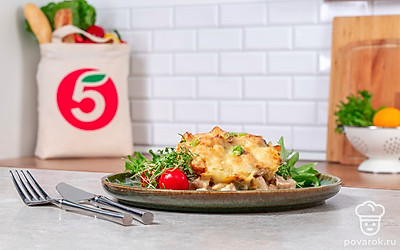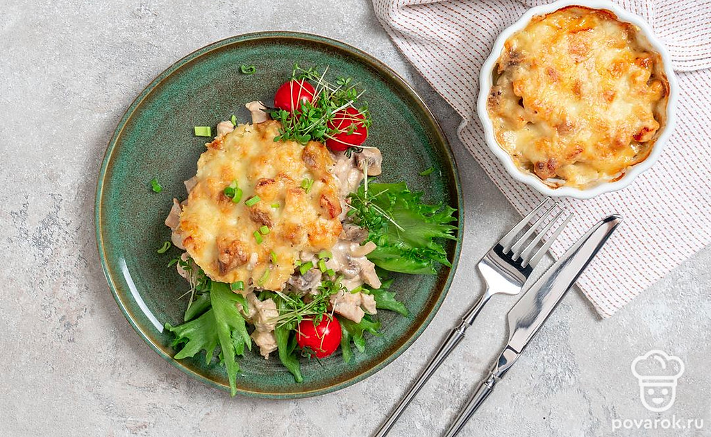 Этот жюльен хорош тем, что он максимально просто готовится, но остается таким же вкусным, как и в классическом варианте. Здесь нет соуса бешамель, а продукты обжариваются не по отдельности, а вместе, пропитываясь соками друг друга. Сметана и тертый сыр создают неподражаемый сливочно-молочный вкус и аромат, сравнимый с привычным бешамель.