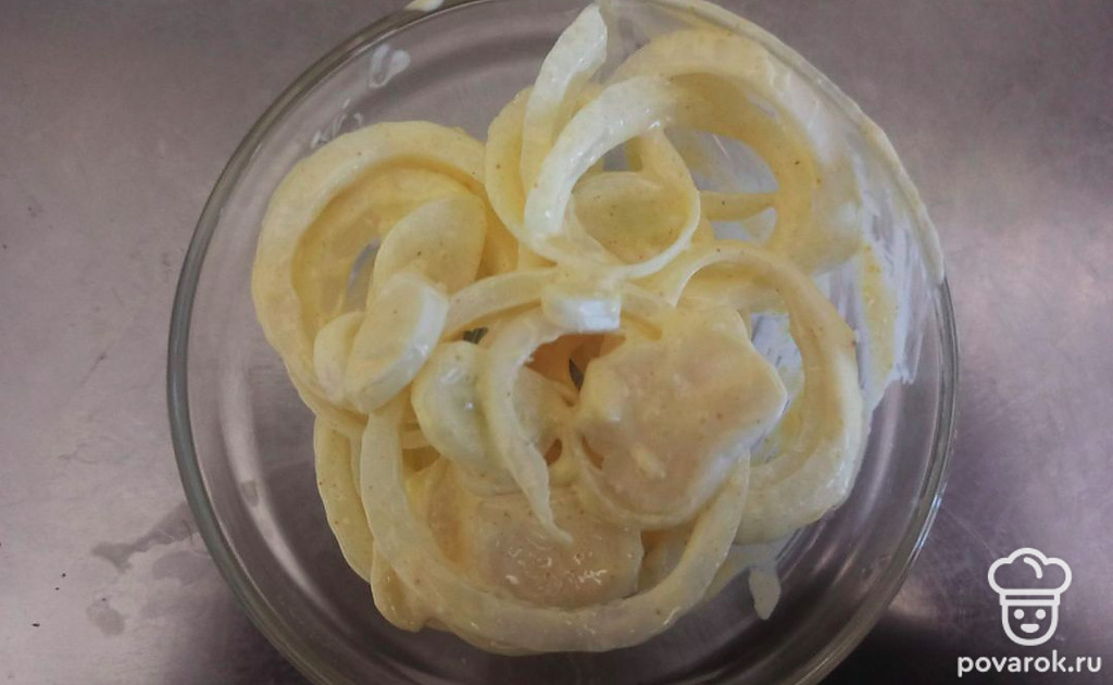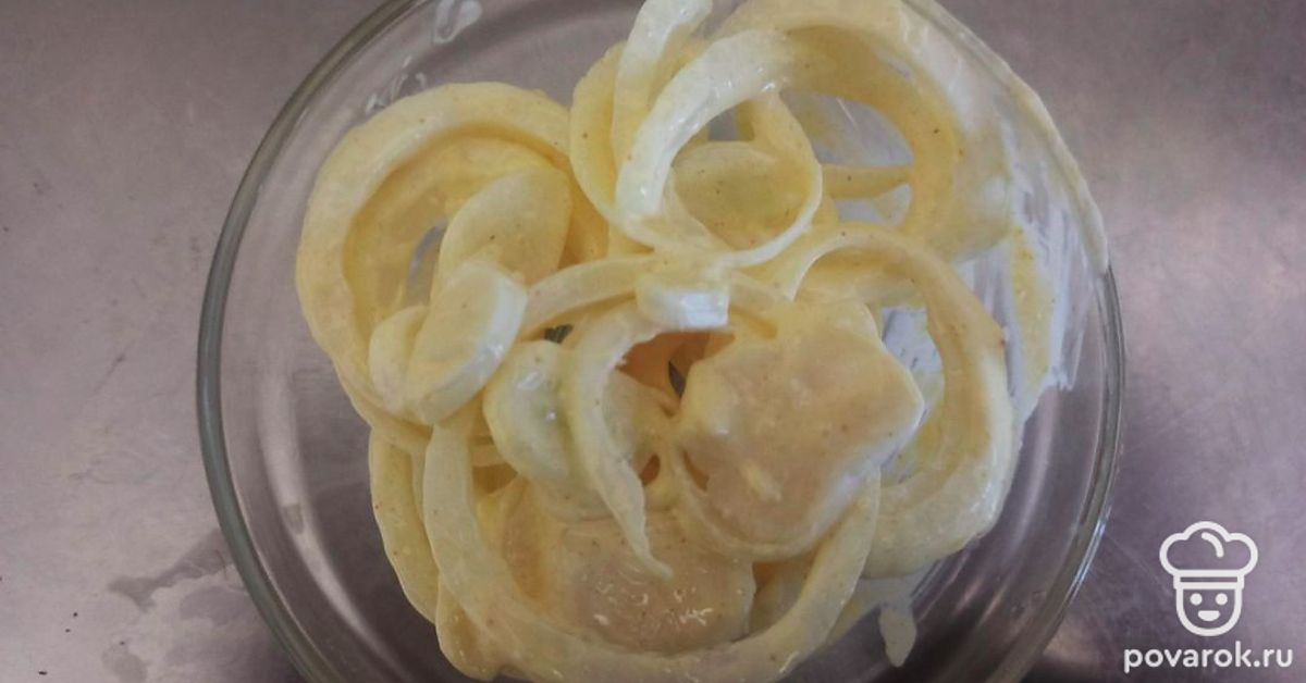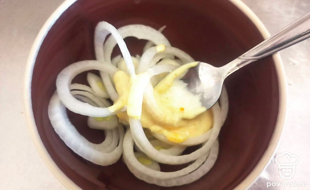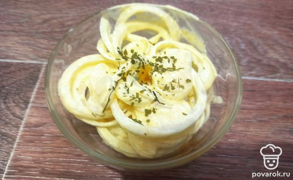 Маринованный лук в майонезе со столовым хреном и куркумой