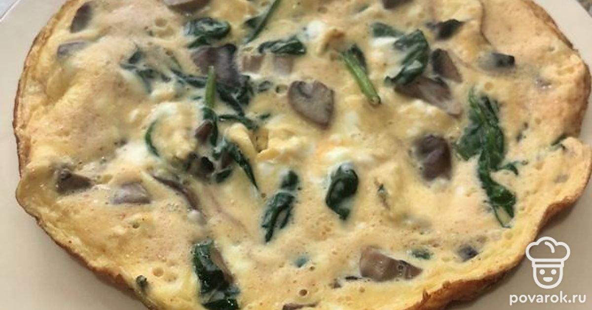 Любимые завтраки всей семьи — это омлеты или яичница. Фриттата — итальянское блюдо, но в нашем варианте оно выглядит скорее омлетом. В общем, назвать можно как угодно, зато вкус не меняется, он всегда на высоте. Шпинат и грибы —идеальная начинка для заливного омлета.