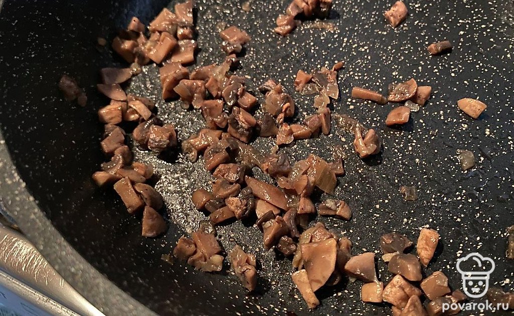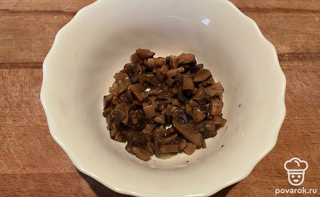 Мелко нарежьте грибы и обжарьте их с чесноком.