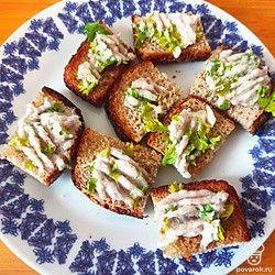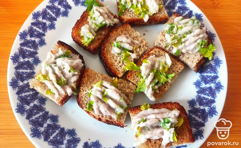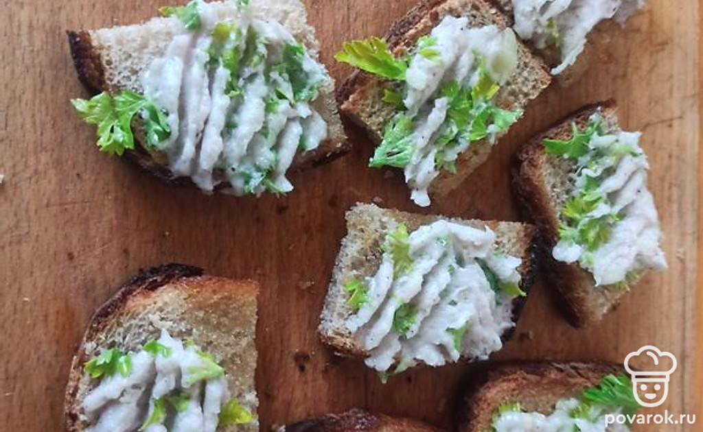 Намажьте горячие гренки получившейся намазкой и подайте к столу.