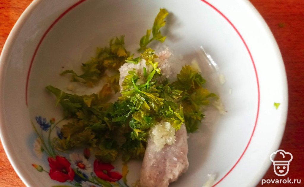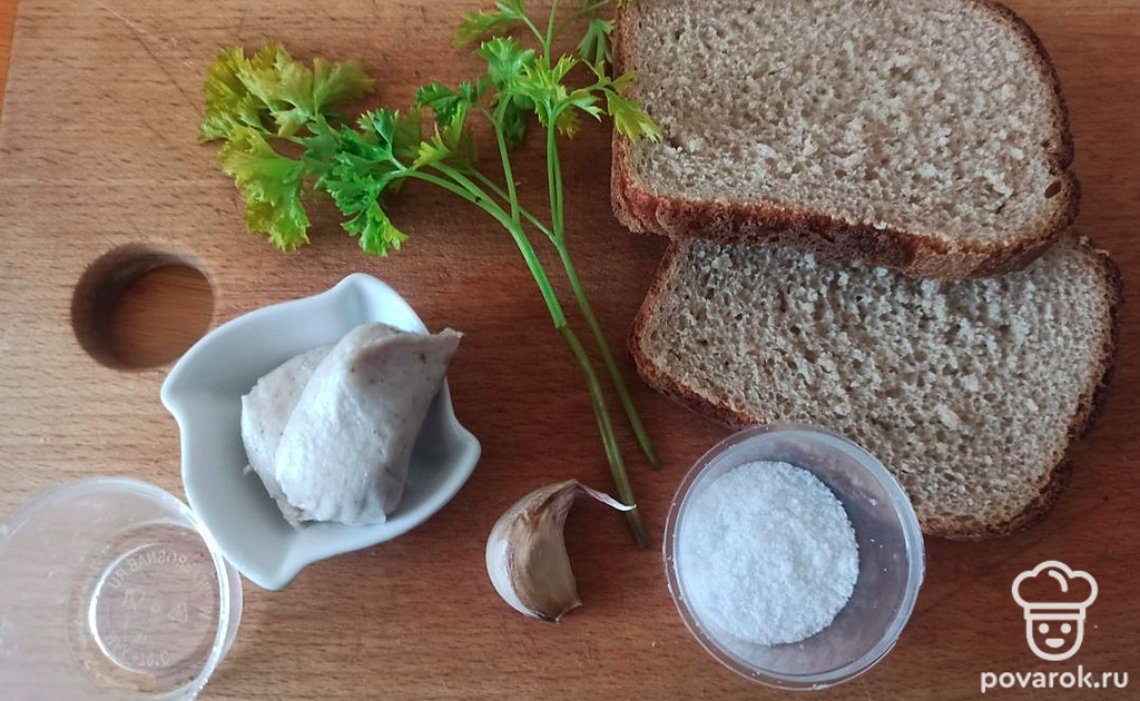 Для намазки смешайте шпик с измельченной петрушкой, натертым на терке чесноком и солью.