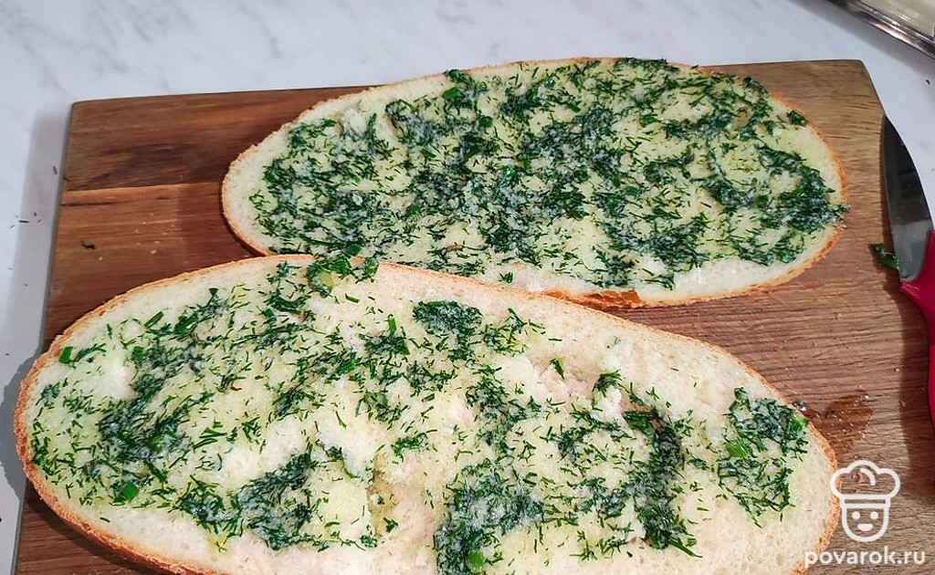 Приготовим вкусную закуску из батона с сыром и чесноком.