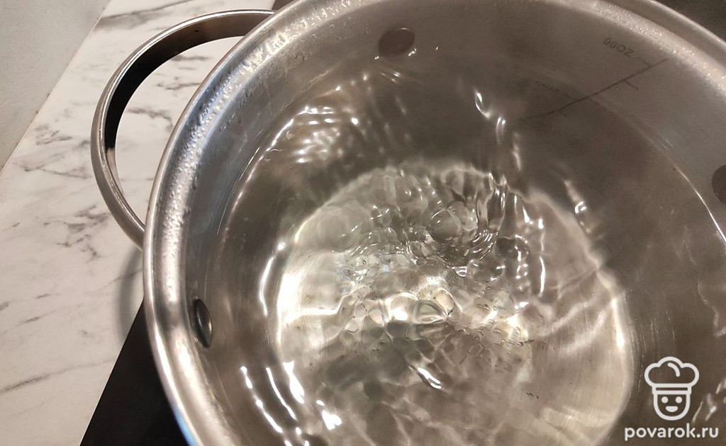 В кастрюлю с водой добавить уксус и соль, поставить на плиту, довести до кипения. Желательно использовать кастрюлю объемом не менее 2 литров. Когда вода закипит, убавить огонь до среднего и начать размешивать ложкой до образования воронки.