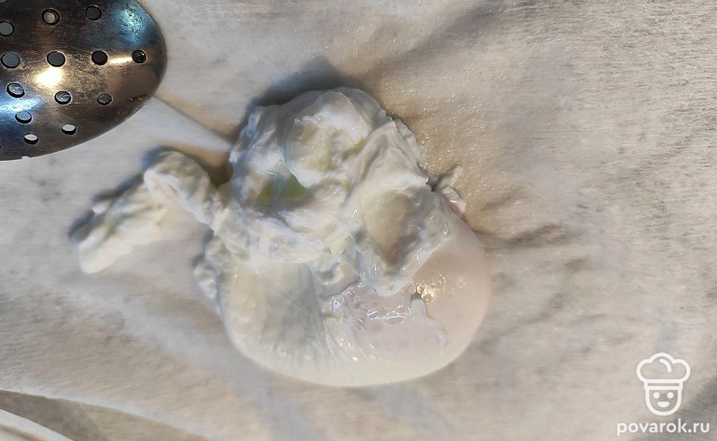 Аккуратно и быстро влить яйцо в образовавшуюся воронку. Можно продолжать при этом помешивать воду по кругу, чтобы яйцо не расплылось по воде, а собралось в один клубочек. Варить 2 минуты, достать шумовкой или ложечкой и переложить на салфетку или полотенце.