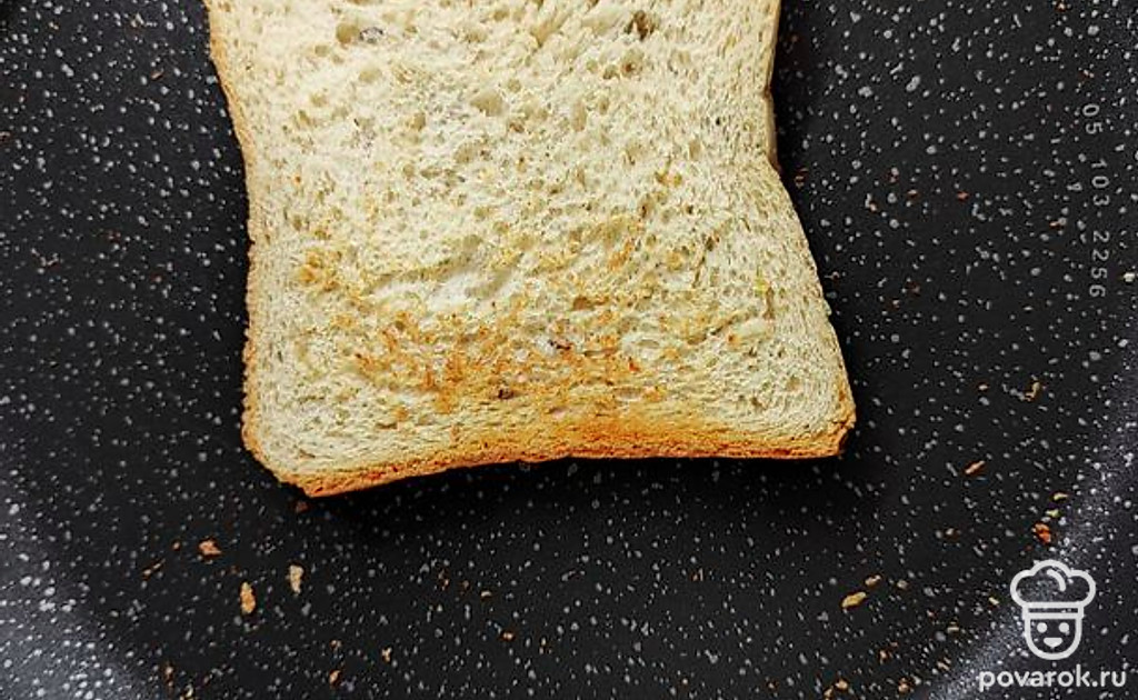 Пока яйцо остывает, приготовить тост. Поджарить хлеб с двух сторон до образования легкой румяной корочки.