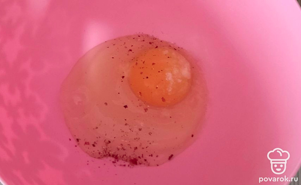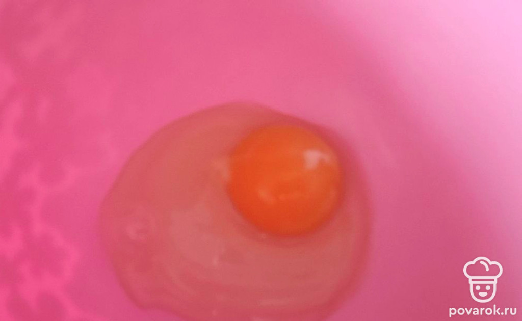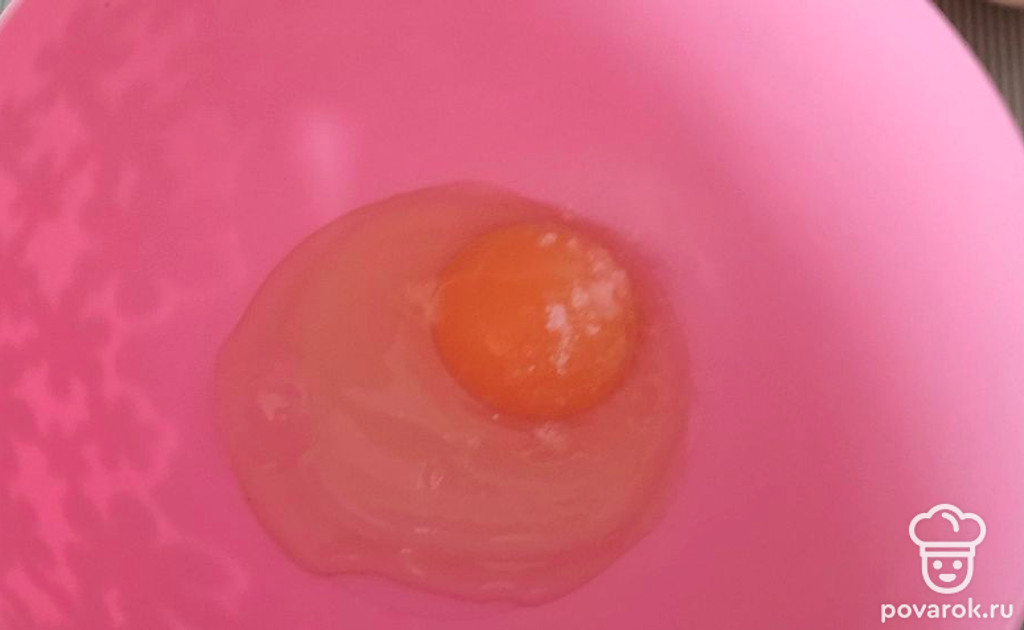 Яйцо разбиваем в миску. Добавляем немного воды.