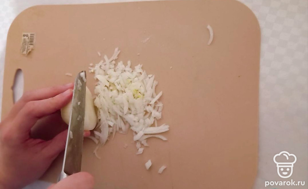 Добавить к тунцу яйцо и наш нарезанный лук, перемешать.