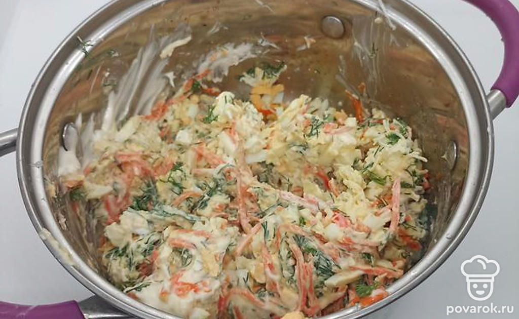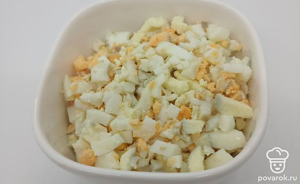 Смешать все ингредиенты, добавить майонез, перемешать.