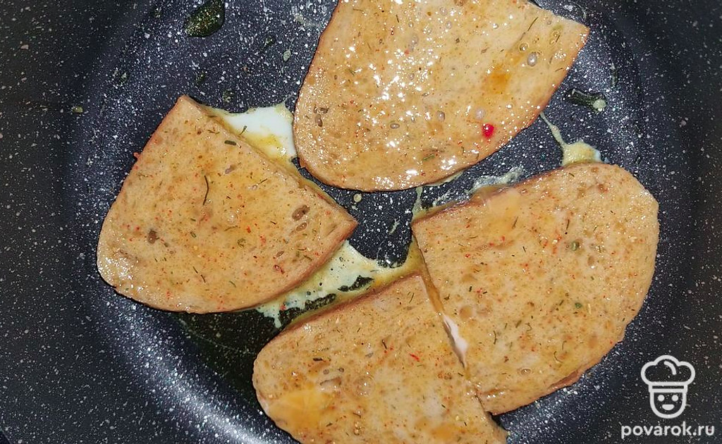 Подавать как гренки или основу под бутерброды. Можно подать к супу или паштету. Приятного аппетита!