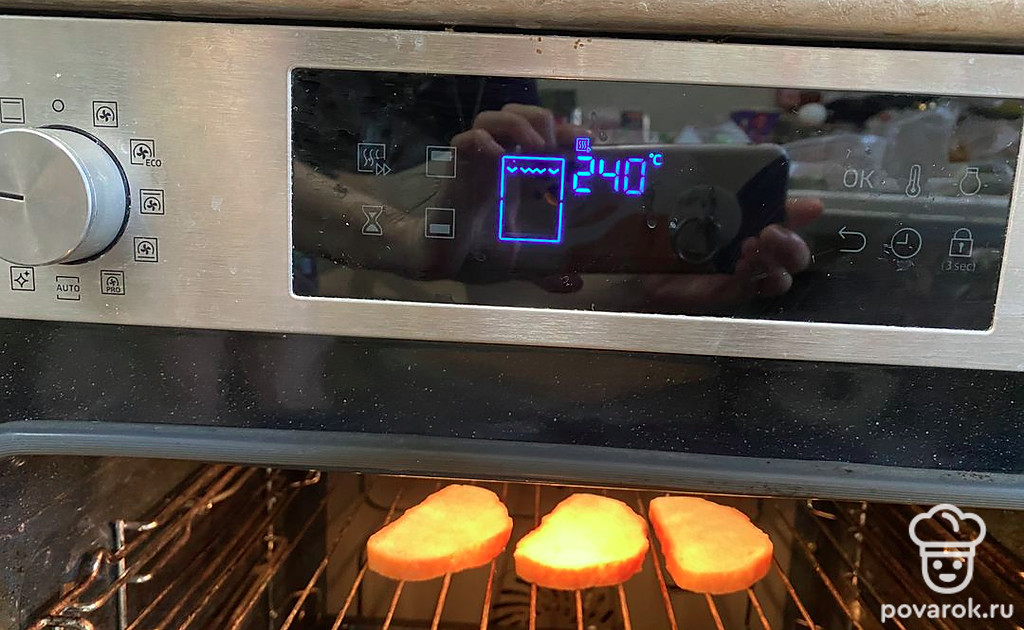 Отправьте хлеб в разогретую до 240 градусов духовку на 4 минуты, чтобы он поджарился (режим «Гриль» или «Верхний нагрев»). Можно воспользоваться тостером или сухой сковородой.