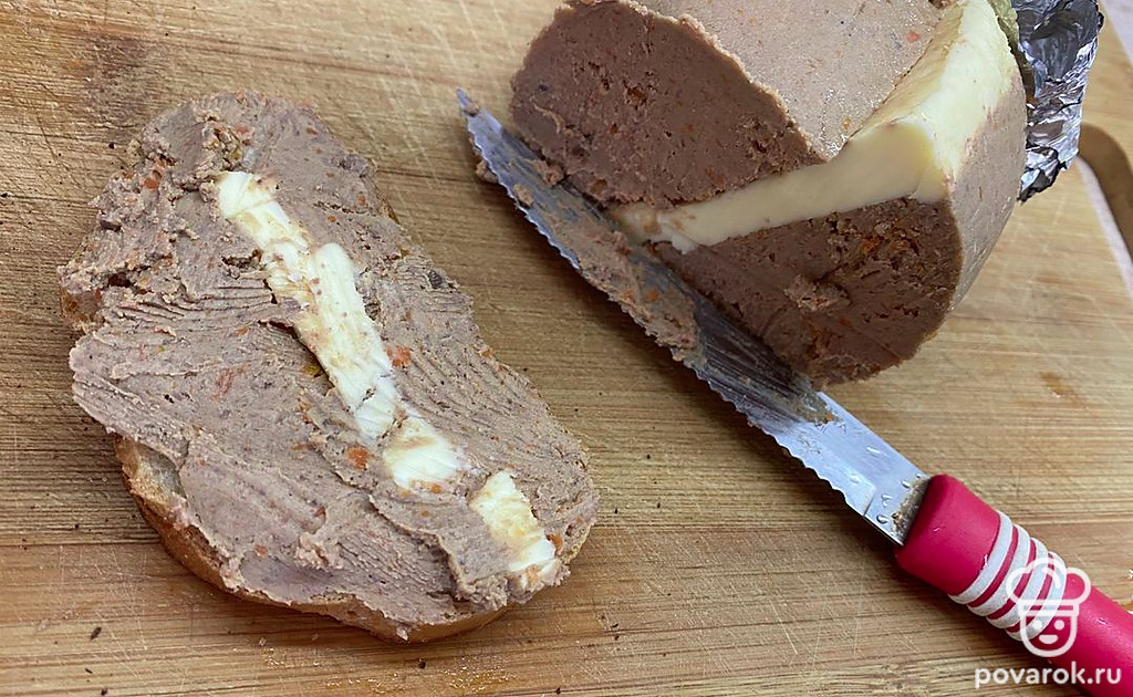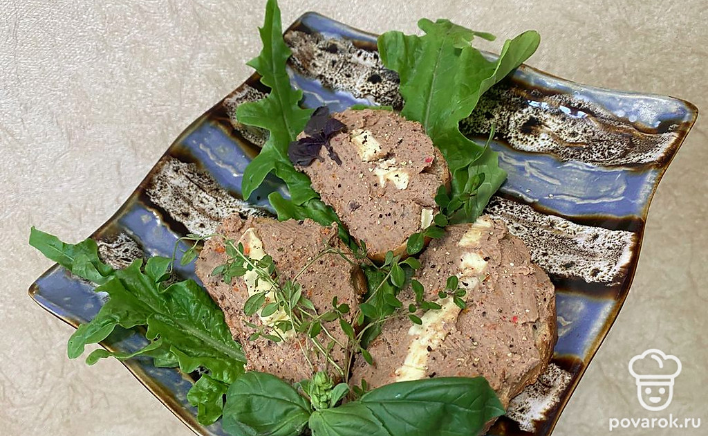 На поджаренный хлеб щедрым слоем намажьте паштет из печени.