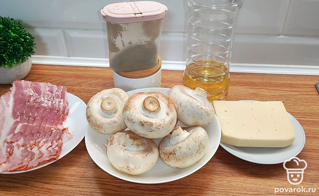 Подготовить все ингредиенты. Для запекания грибы лучше купить крупного размера.