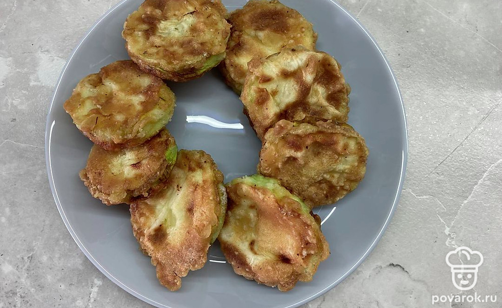 Подать кабачки в кляре на закуску. Приятного аппетита!