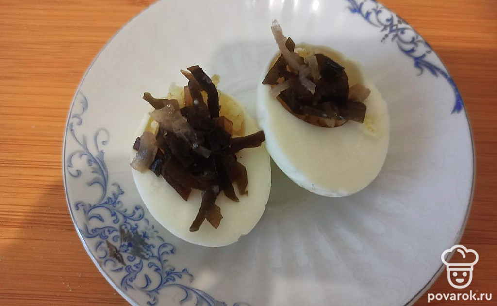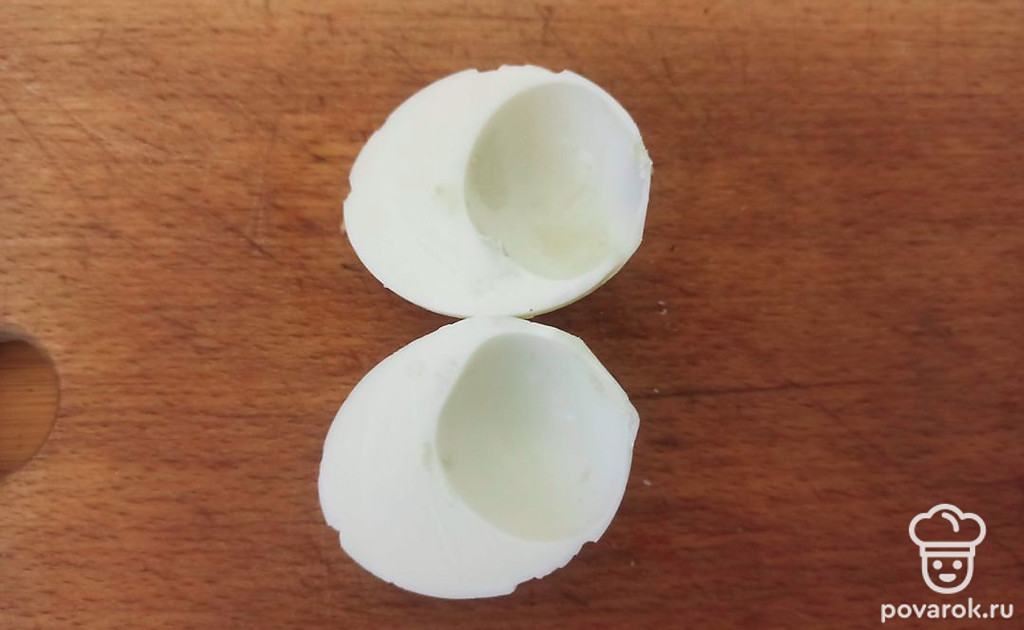 Яйцо остудите, разрежьте на половинки и извлеките желток.