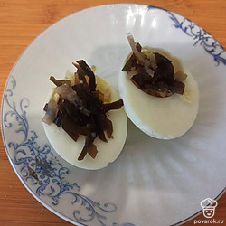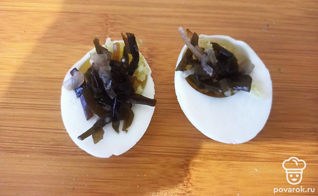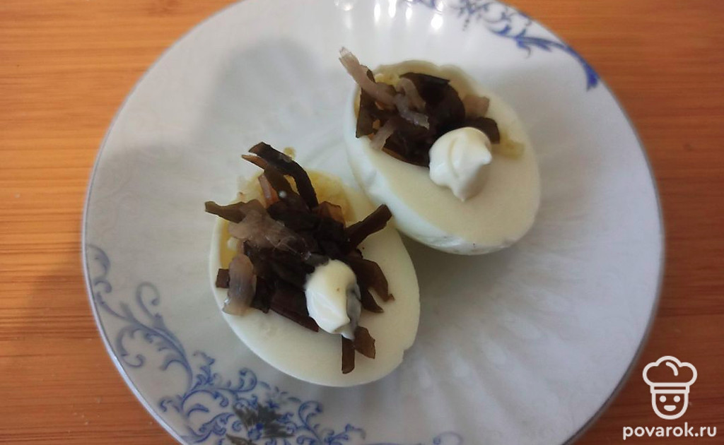 Для подачи выдавите по капле майонеза на каждое яйцо и посолите по вкусу.