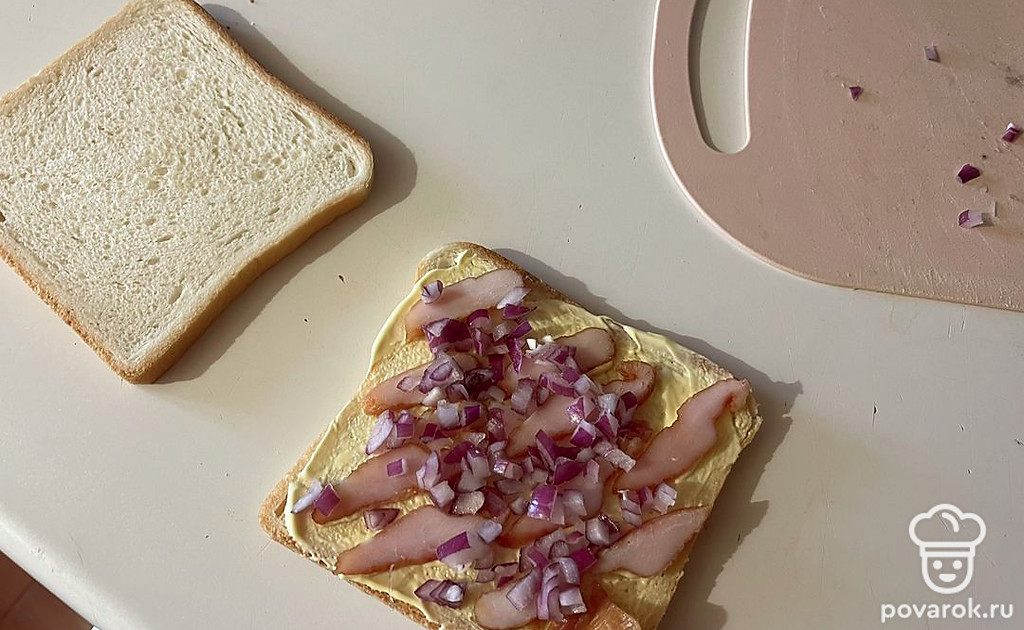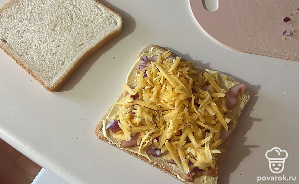 Накройте начинку вторым ломтиком хлеба и слегка придавите.