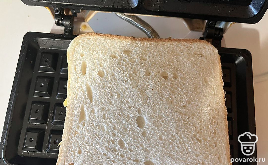 Выложите тост с начинкой на разогретую вафельницу.