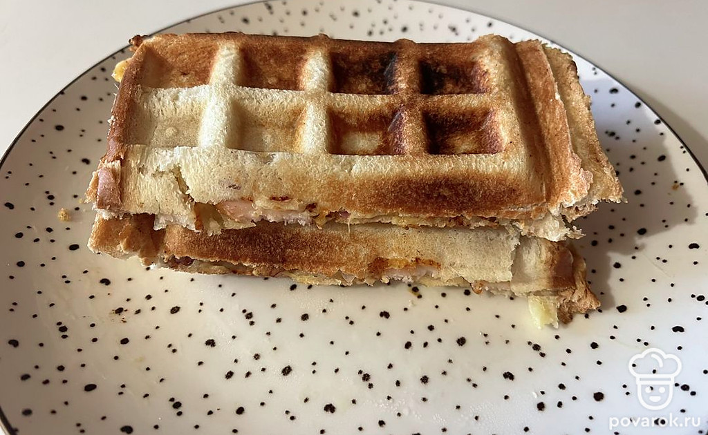 Горячий тост с копченой грудкой в вафельнице