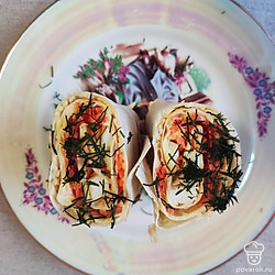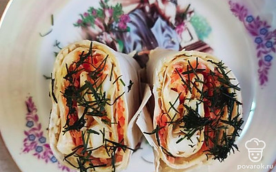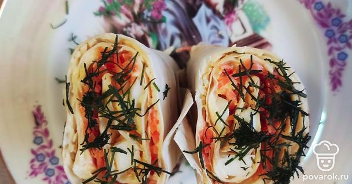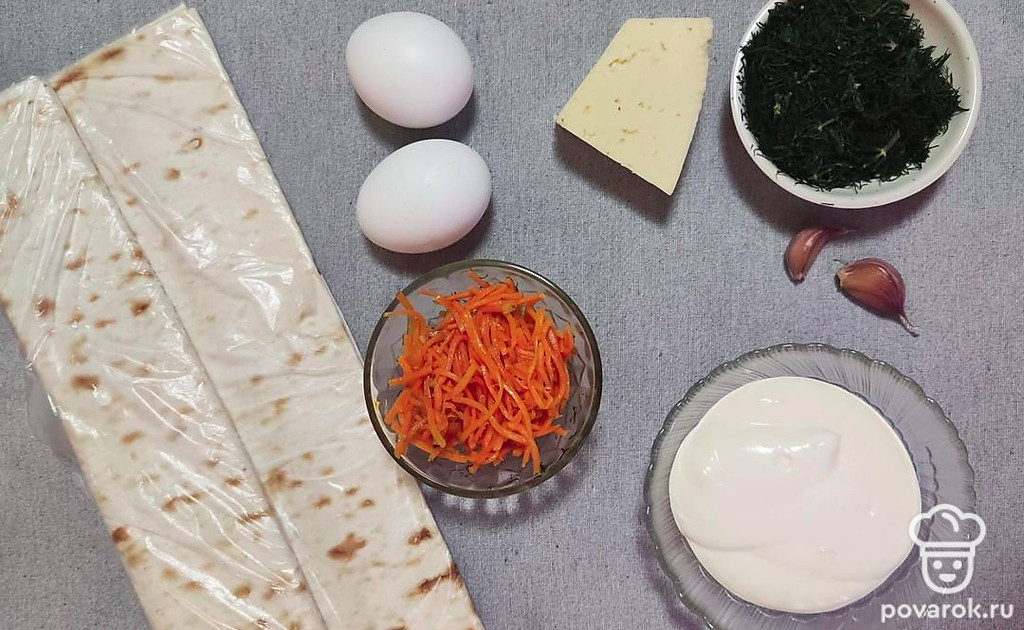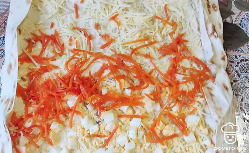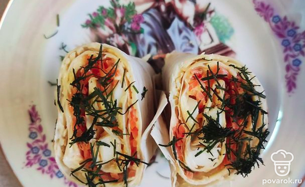 Рулет из лаваша с корейской морковью, яйцом и сыром