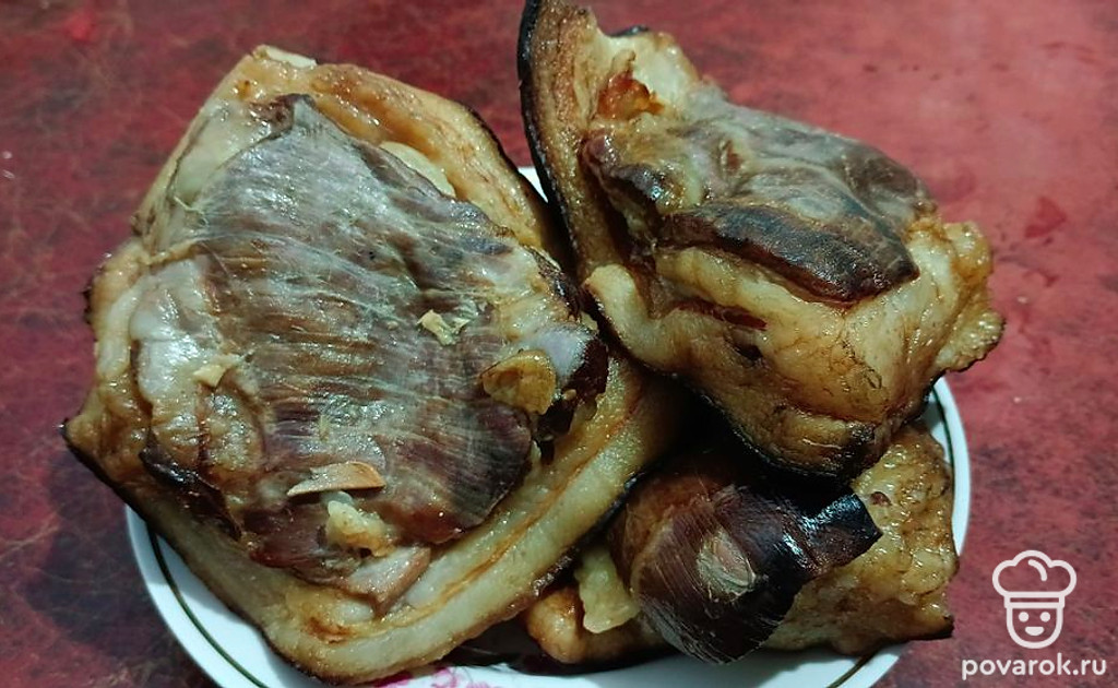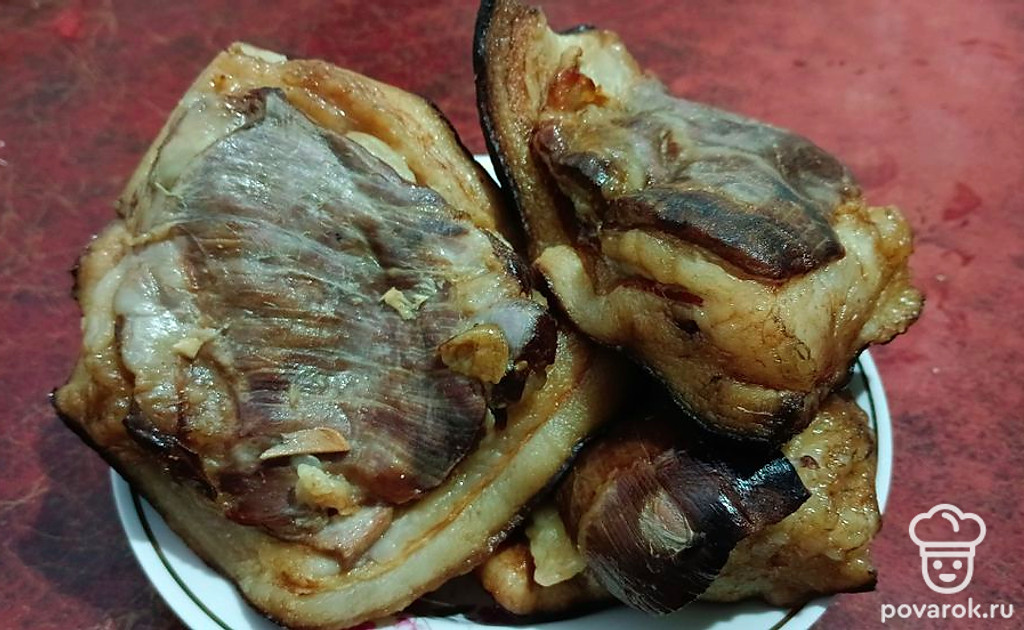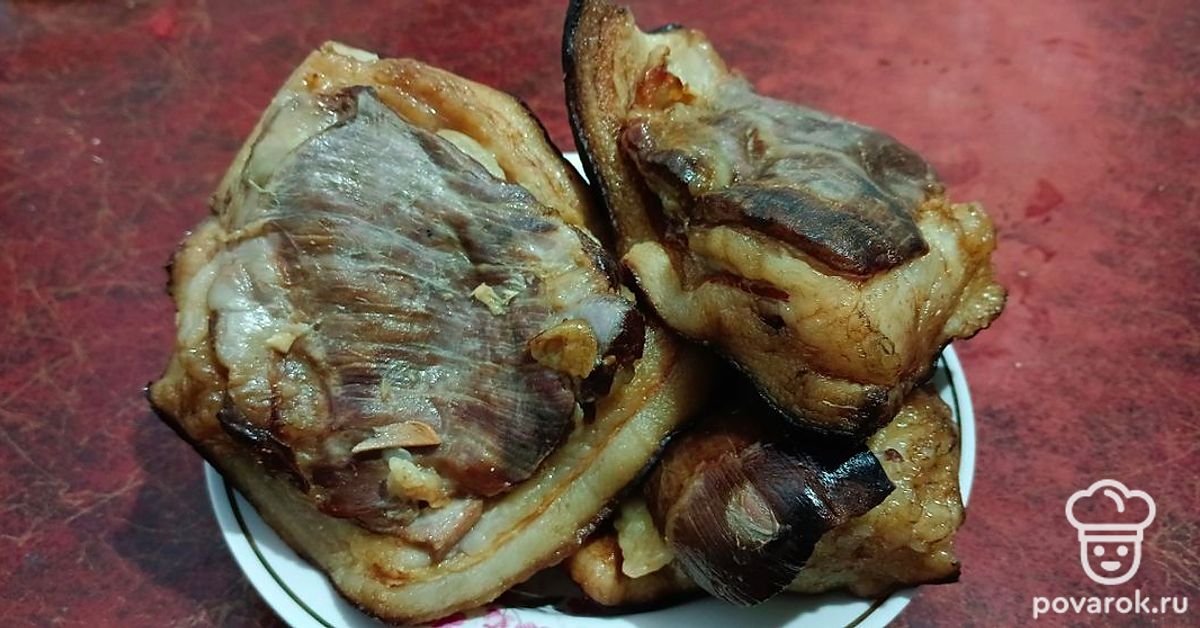 Уложите куски сала плотно друг к дружке. Закройте коптильню и поставьте ее на огонь. Ориентируйтесь по размеру кусочков. Мои стояли примерно 3 часа.