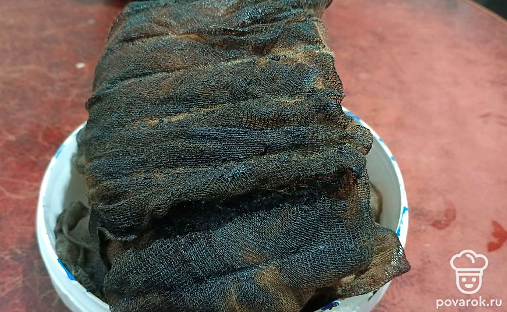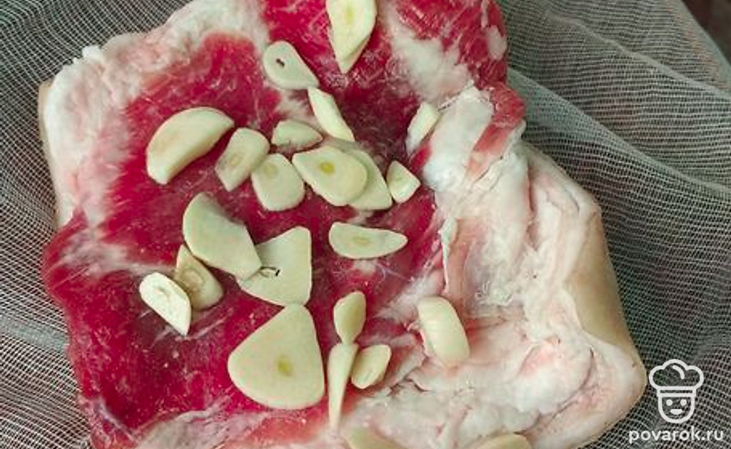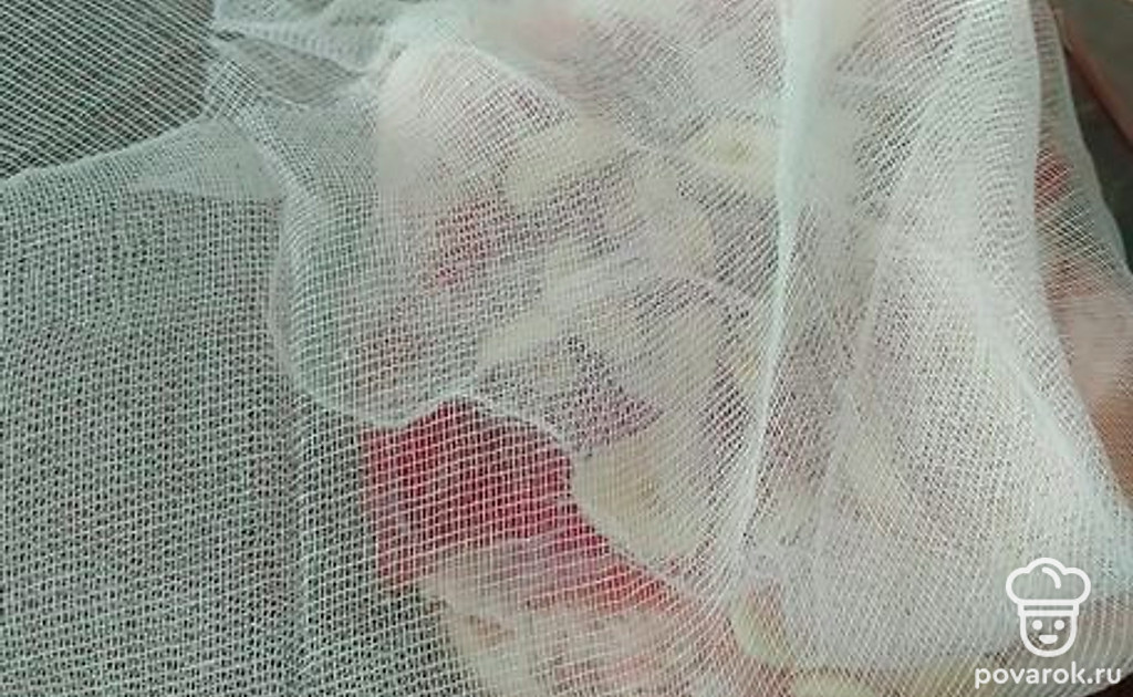 Выложить соленое сало на марлю. Если у вас несколько кусков, то каждый положите отдельно.