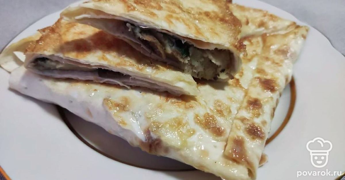 Румяные и быстрые пирожки из лаваша с отварным картофелем и обжаренными грибочками.