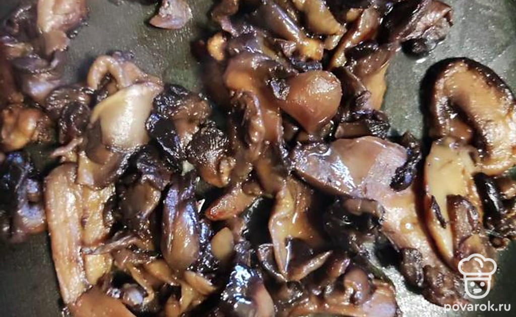 Картошку готовую очищаем и мнем в пюре. Добавляем грибы и соль по вкусу, перемешиваем.