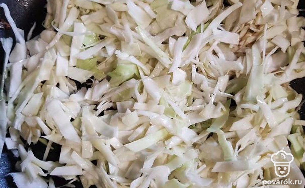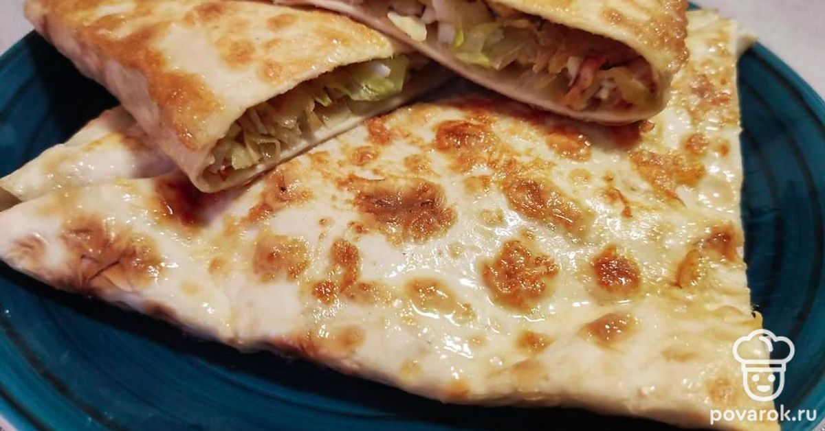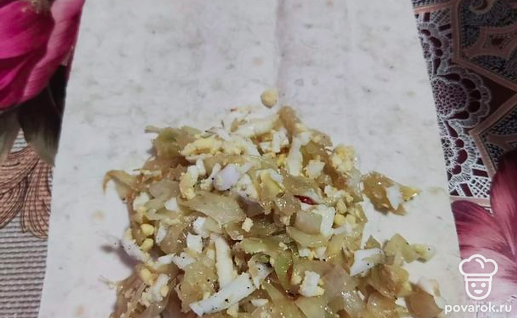 Ленивые пирожки из лаваша с обжаренной капустой и отварным яйцом.