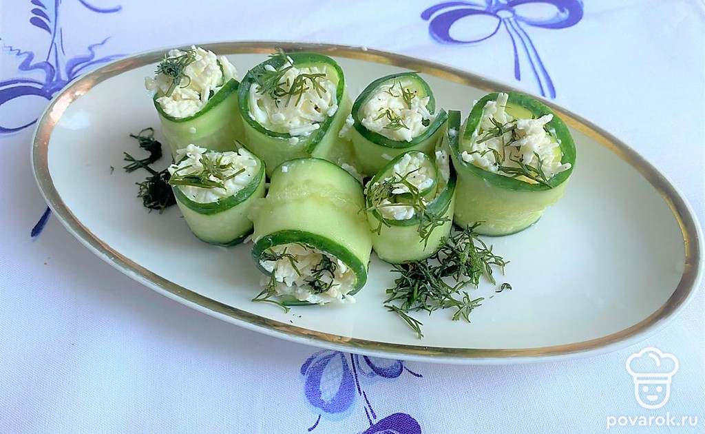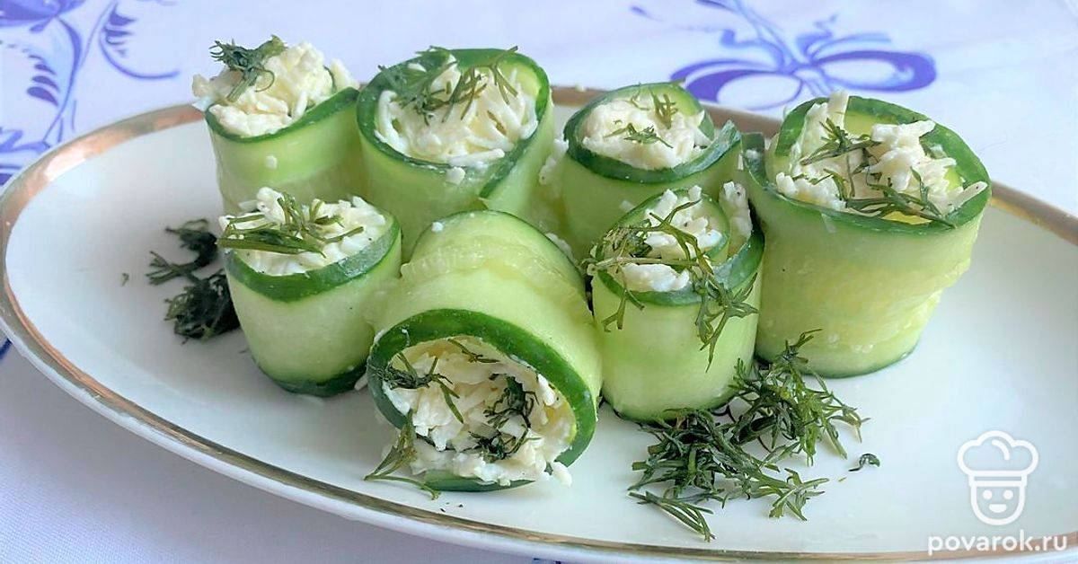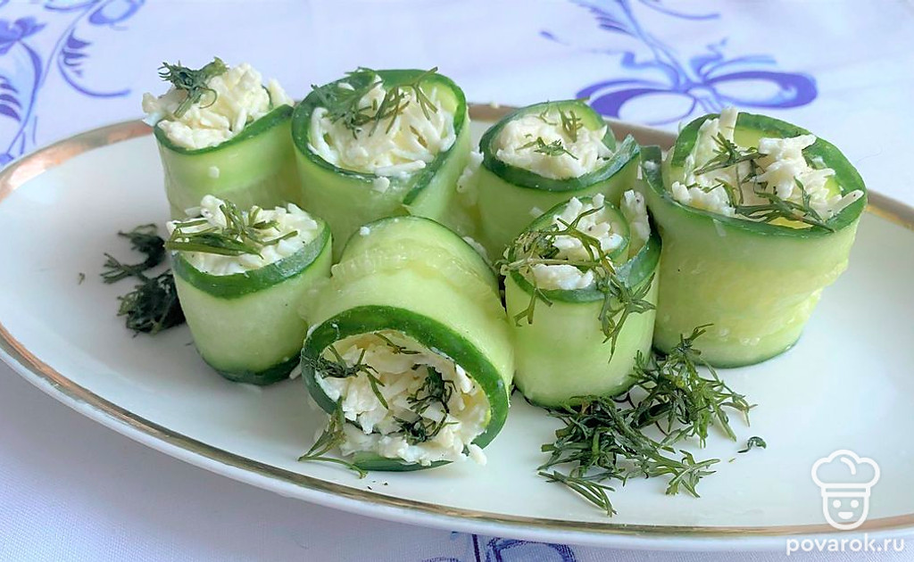 Мини-рулеты из огурца с сырно-чесночной начинкой