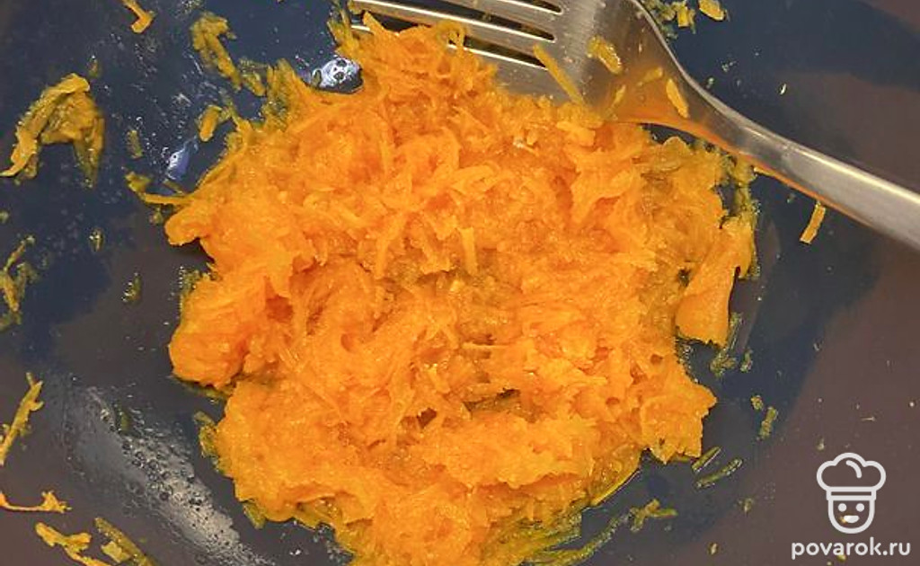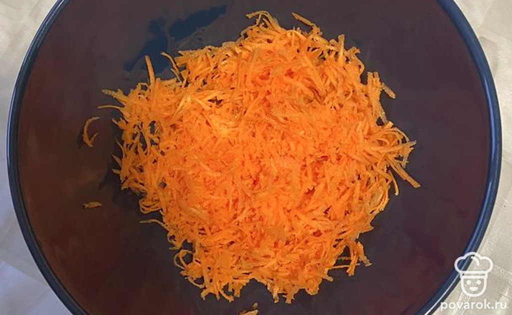 Натереть морковь на мелкой терке.