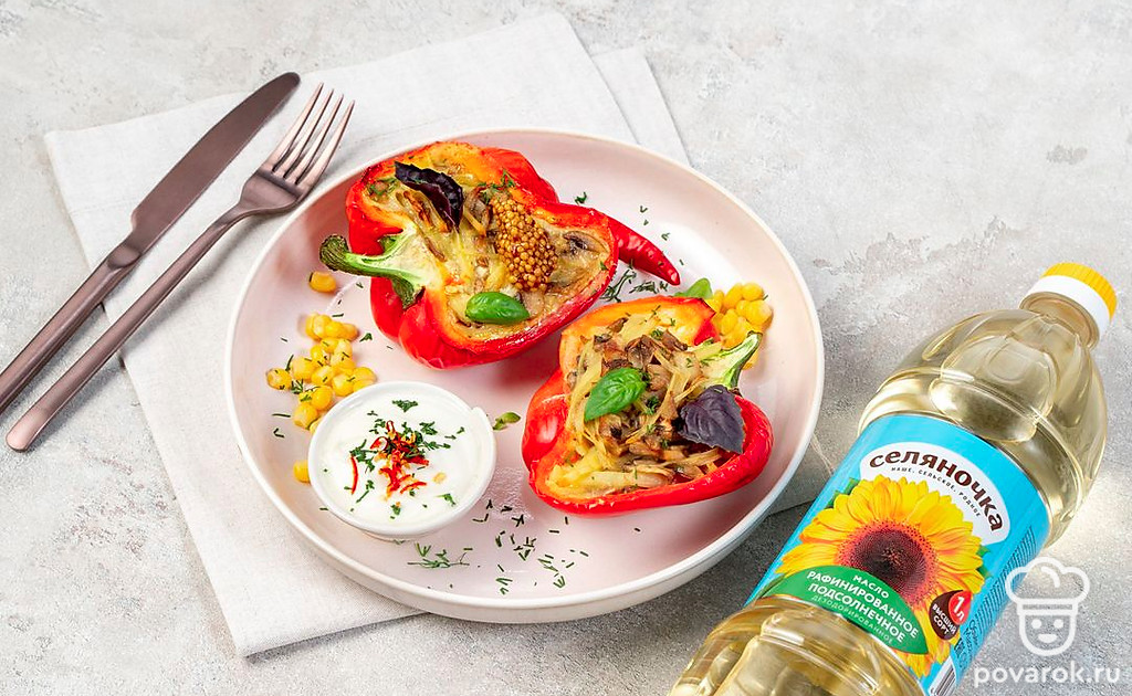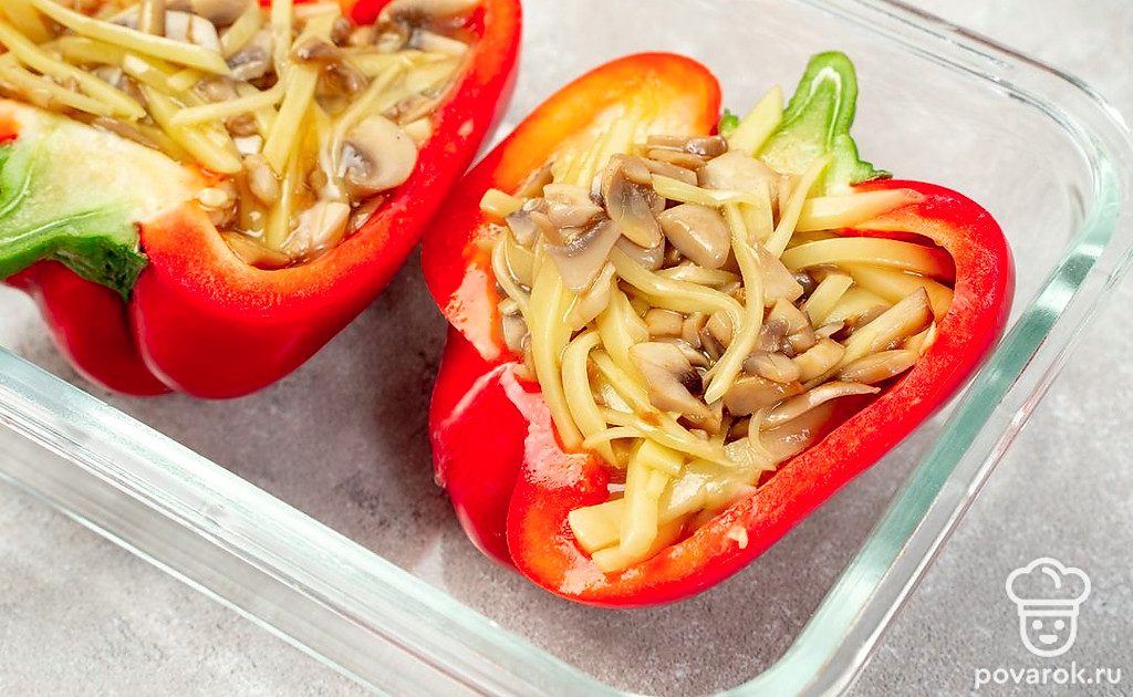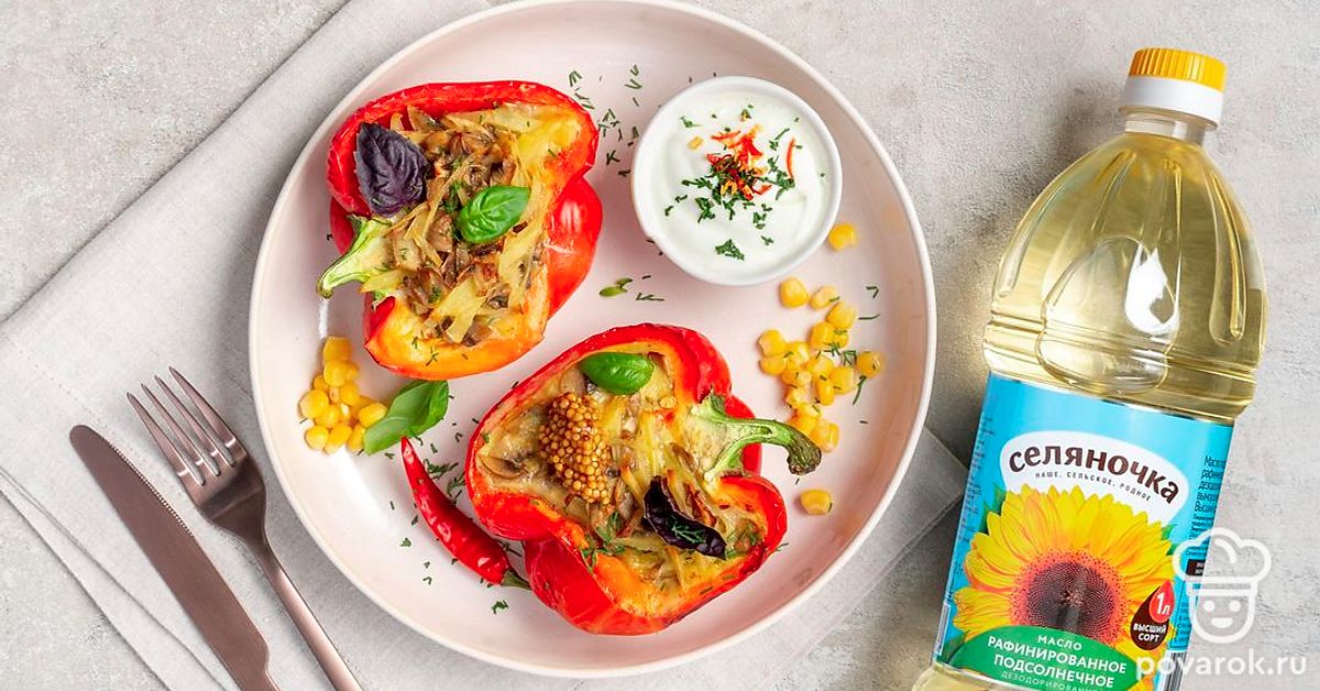 Нежный фаршированный перец с картофелем и грибами без мяса
