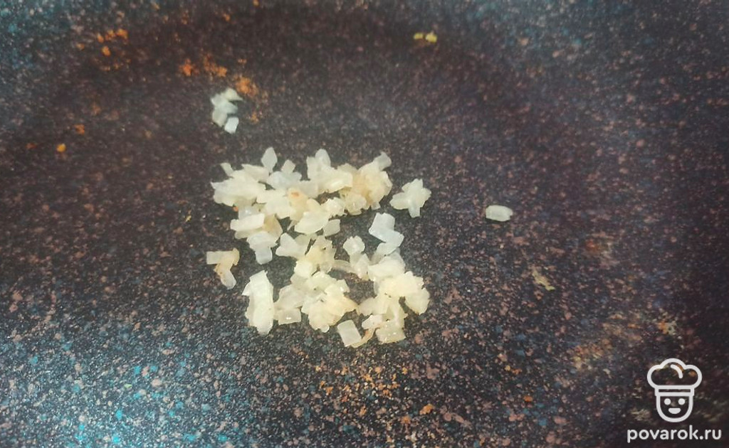 Репчатый лук нарезаем кубиками и обжариваем на растительном масле.