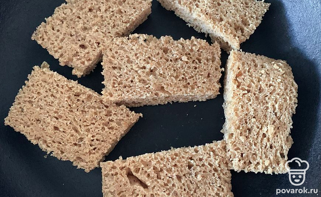 Срезать корки у хлеба, разрезать на порционные кусочки.