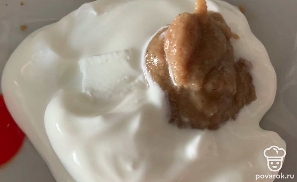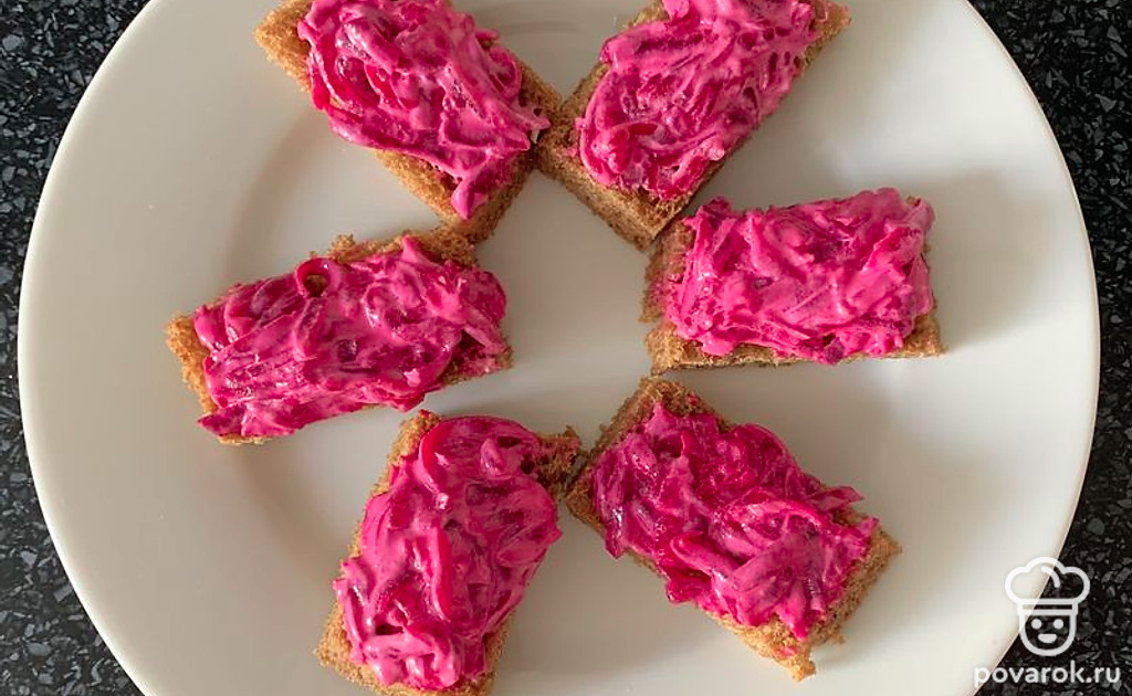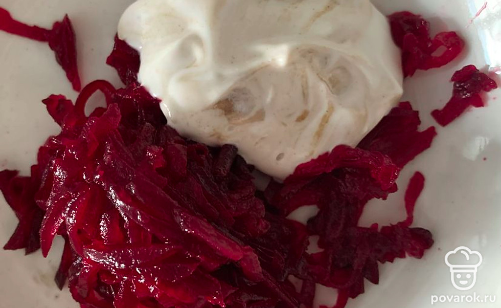 Свеклу натереть на терке, добавить сметану с горчицей.