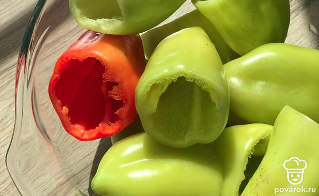 Перец помыть, срезать хвостики, очистить от семян.