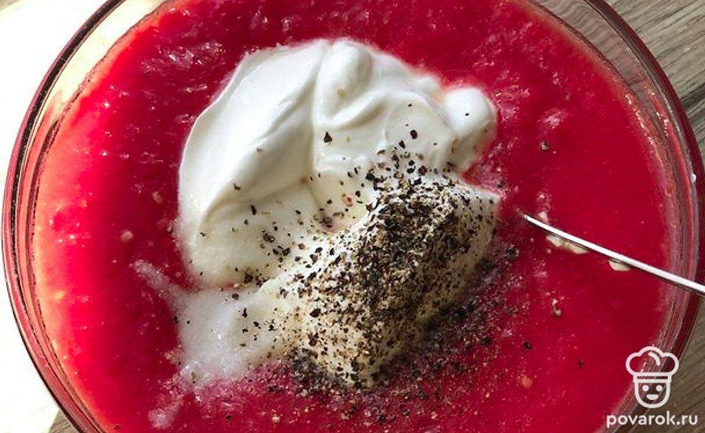 Помидоры помыть, порезать и пробить блендером. Смешать со сметаной, немного поперчить, посолить.