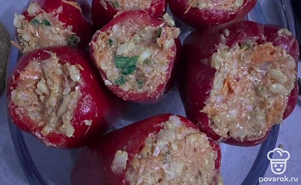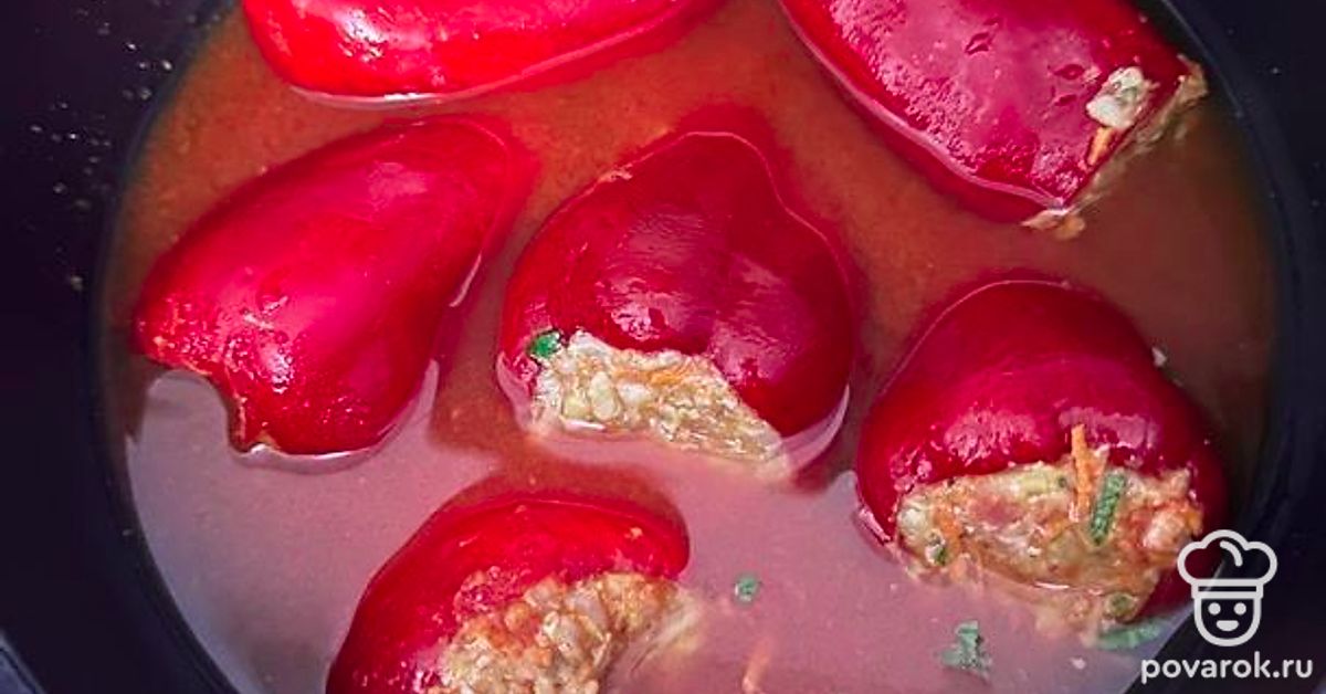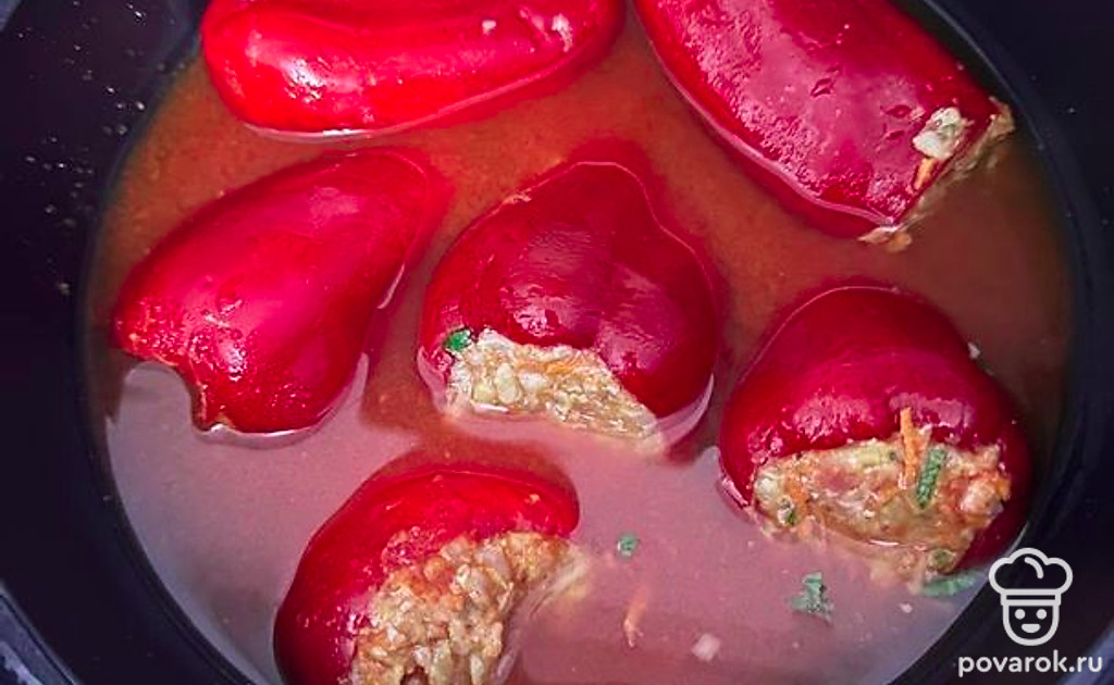 Фаршируем и отправляем тушиться в томатной соке до готовности.
