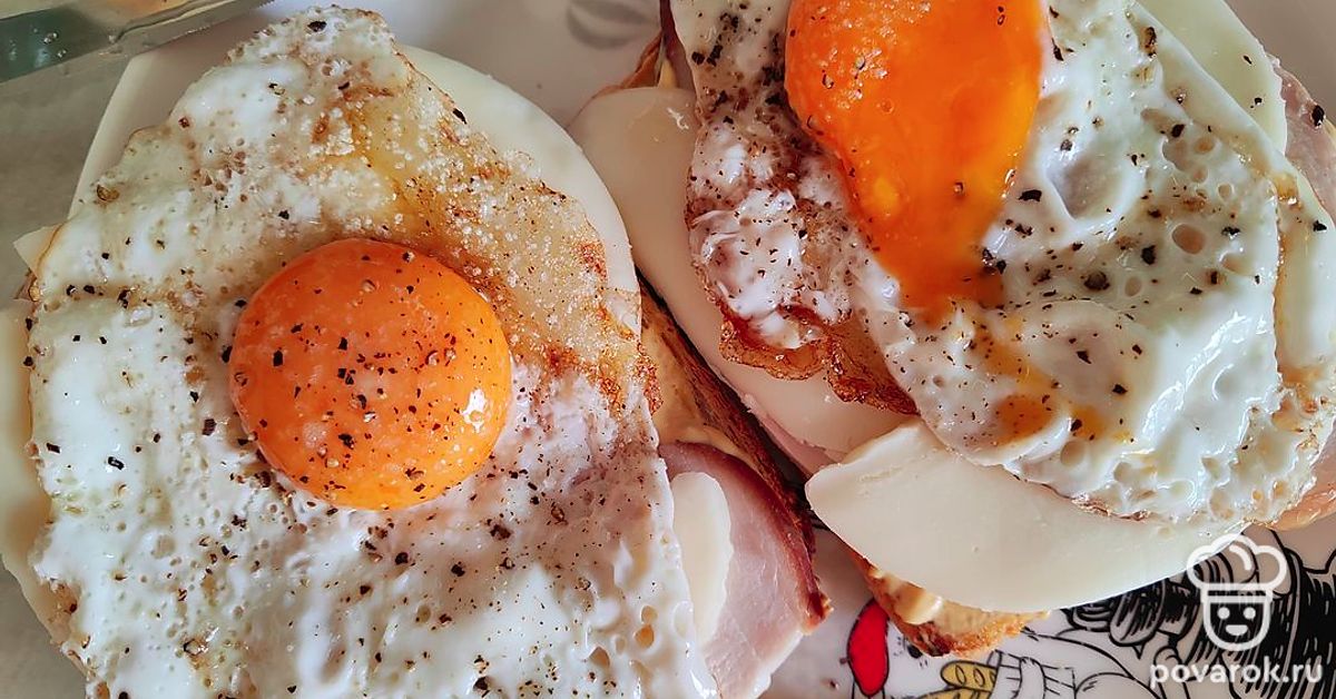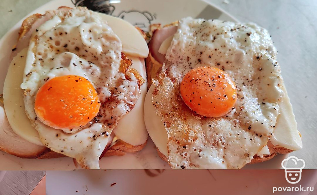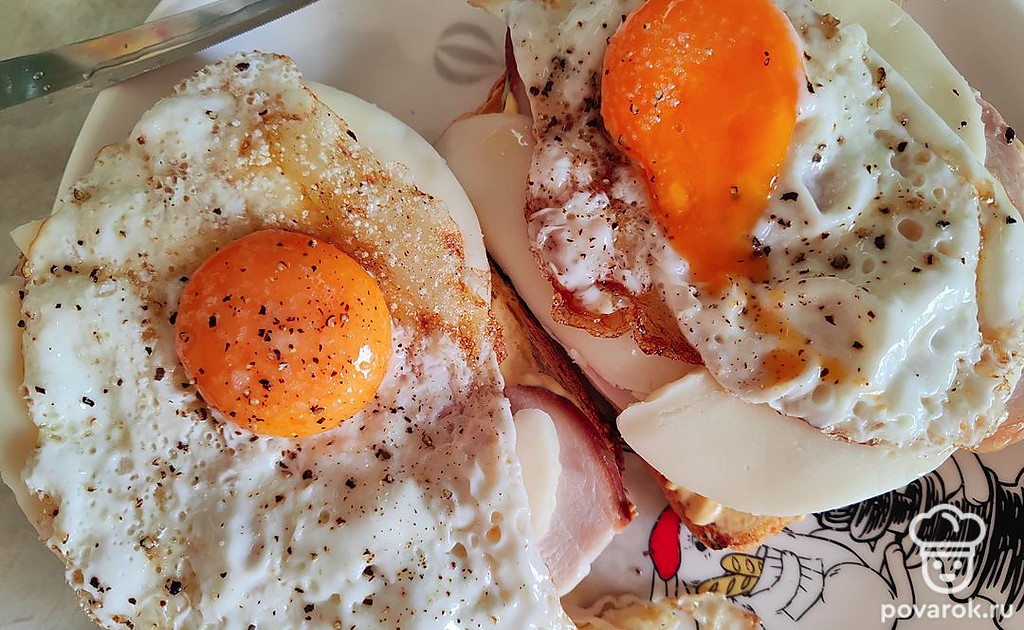 Жареное яйцо с жидким желтком переложите со сковороды сразу на бутерброд.