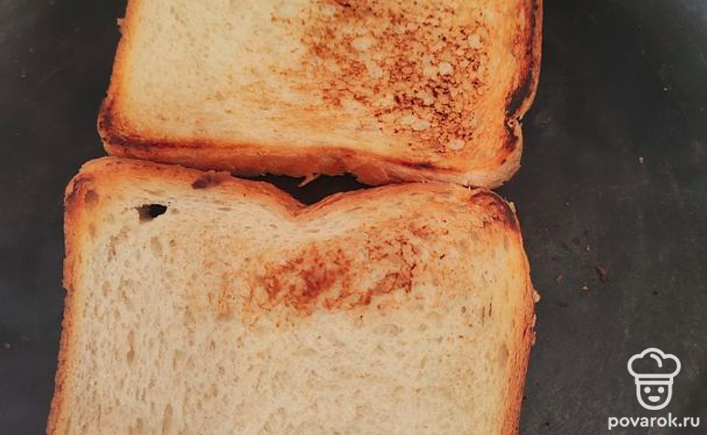 Обжарьте хлеб на сухой сковороде на умеренном огне до золотистого цвета.