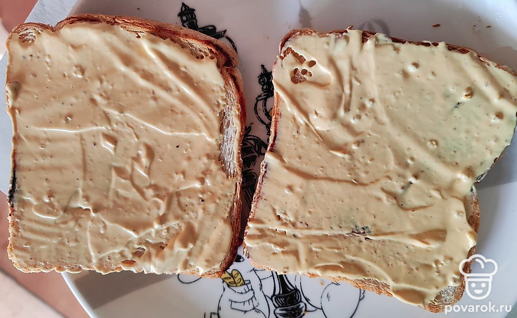 Смажьте тосты горчичным соусом или майонезом с дижонской горчицей.